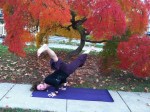 I am an Ambassador for Jade Yoga Mats… Here are some photos of practice on my most recent dark purple Jade Yoga Mat (on the sidewalk in front of my favorite Japanese maple tree in my neighborhood)!